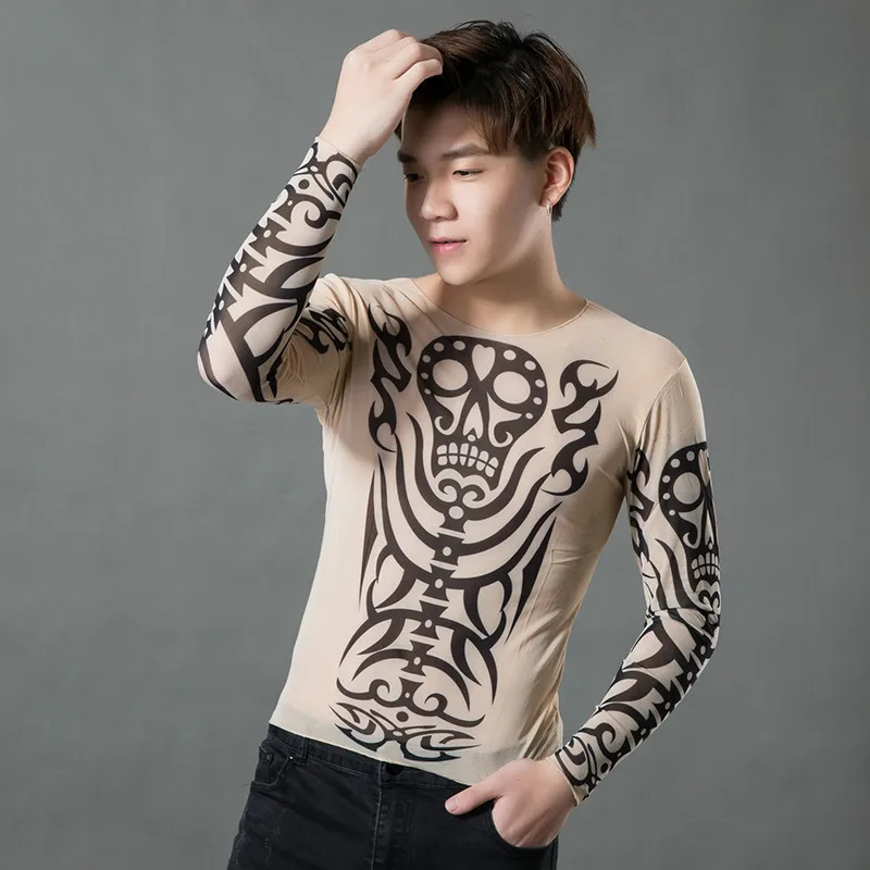Long Sleeved Men S Tattoo T Shirts Punk Dark Trendy Nightclubs Tight Summer Ultra Thin Fast Drying Tattoos